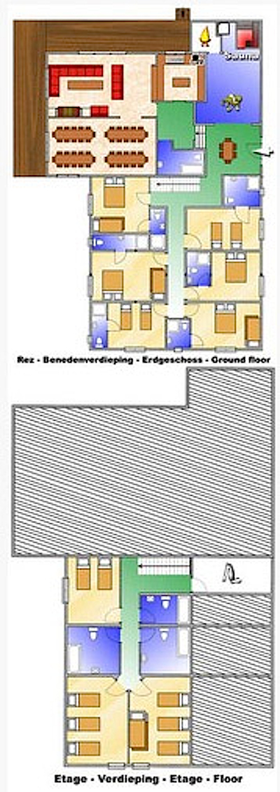 toilet/douche op de kamer. De 4 en 5 persoons slaapkamers